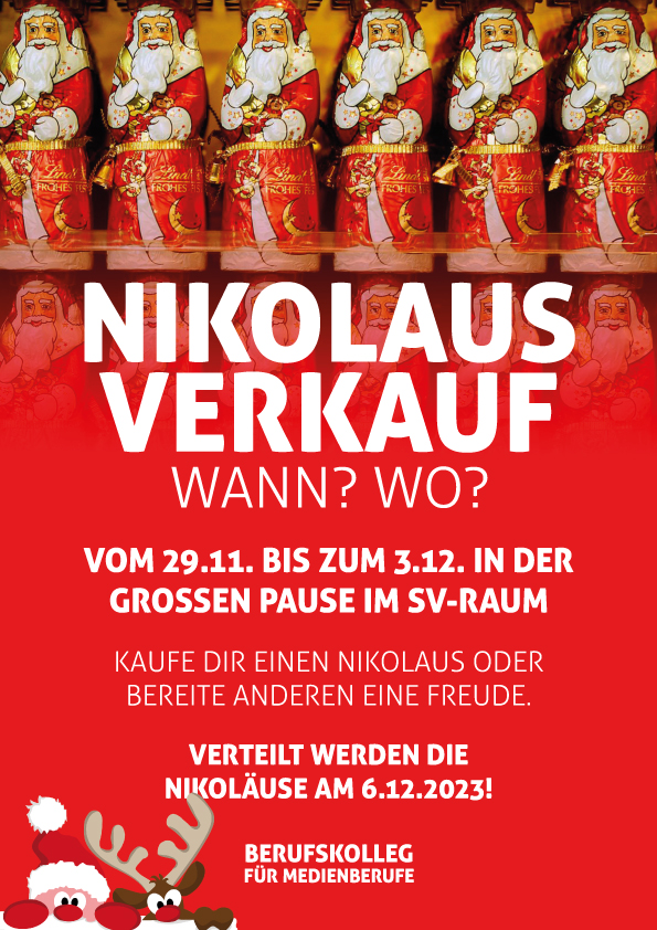 An unserer Schule fand in der Winterzeit ein Nikolaus-Verkauf statt, der von der Schülervertretung (SV) organisiert wurde. Schüler und Lehrer hatten die Möglichkeit, Nikoläuse zu kaufen und eine persönliche Nachricht zu hinterlassen. Die Aktion stieß auf große Begeisterung, da sie nicht nur für weihnachtliche Stimmung sorgte, sondern auch die Gemeinschaft stärkte. Am Nikolaustag übernahm die SV die Verteilung der Nikoläuse und Nachrichten, wodurch viele Lächeln und freudige Überraschungen entstanden.